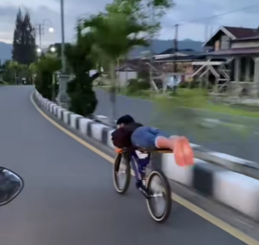 GAYA LUMBA-LUMBA DI JALAN RAYA: AKSI TENGKURAP DI SEPEDA YANG VIRAL TANPA SAFETY GEAR